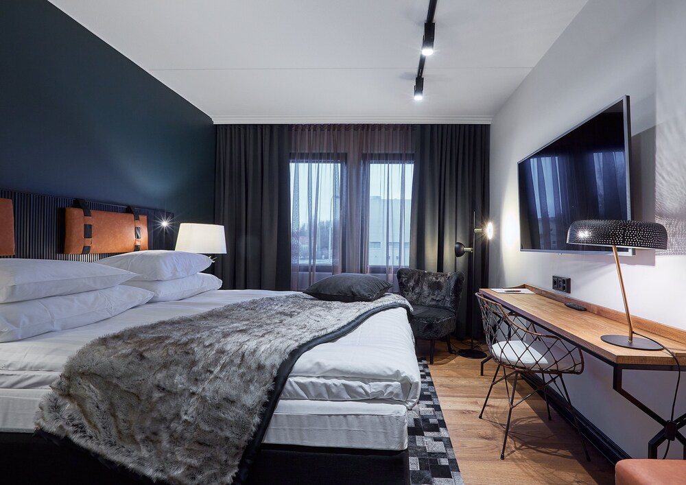 Original Sokos Hotel Kimmelin sviitin makuuhuone. Kaija-Riitta Uusitalo hotellinjohtaja Original Sokos Hotel Kimmel ja Vaakuna Joensuu 010 762 3598. Kokous- ja tapahtumatila Penttilä ja Linnunlahti.